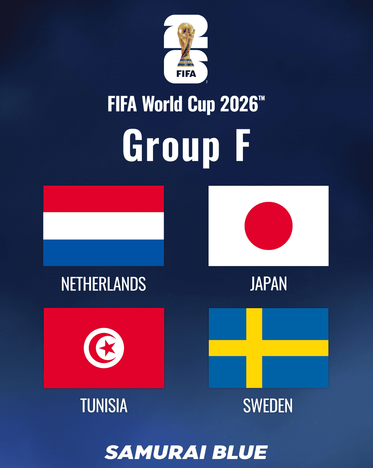 【2026W杯】日本代表のグループF対戦相手が確定 オランダ・スウェーデン・チュニジアと同組