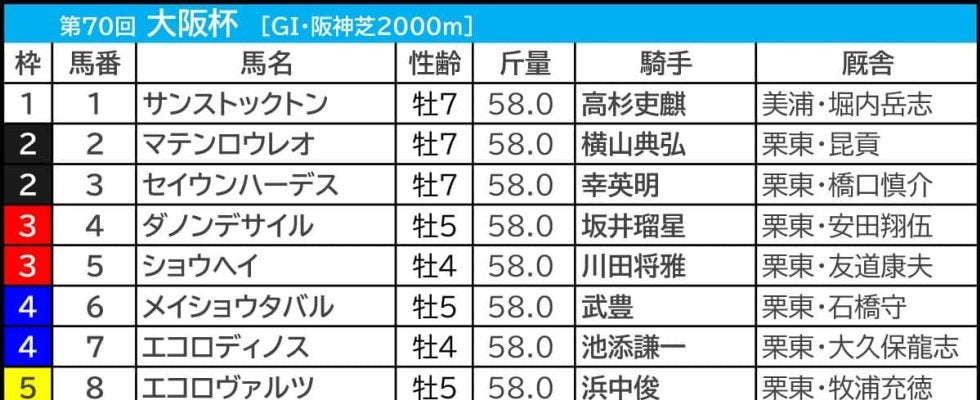 【大阪杯/枠順】ショウヘイが「2.1.0.1」脚質マッチの好枠GET “馬券内率50%”前後で要警戒の伏兵出現 | その他競技