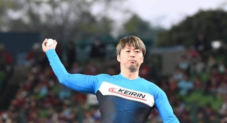 競輪界のレジェンド・平原康多氏が始球式 自身の冠大会をPR | 野球