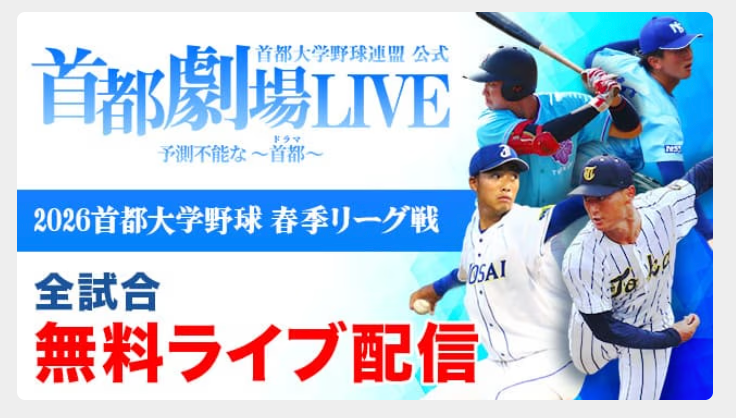 【無料ライブ配信】首都大学野球の熱戦は📺首都劇場LIVEをCheck