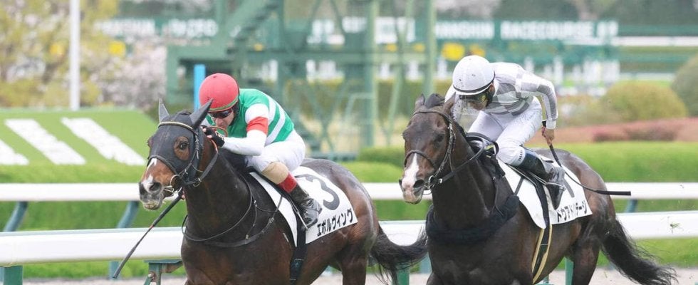 阪神6Rを勝利したエボルヴィング(左)(カメラ・荒牧 徹)