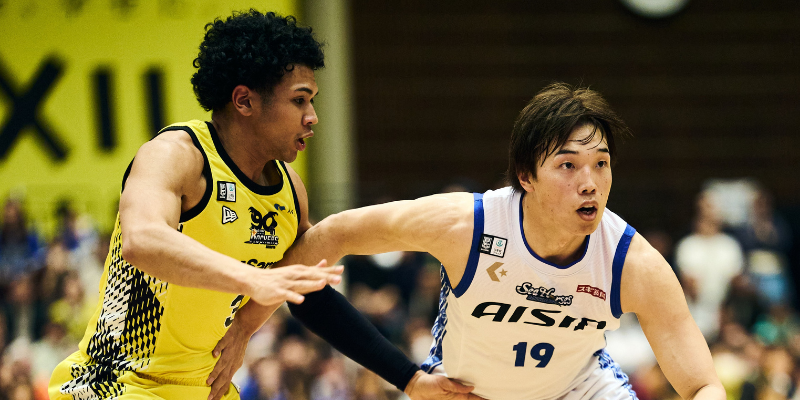 両チーム最多17得点をマークし勝利に貢献した三河の西田優大[写真]=B.LEAGUE