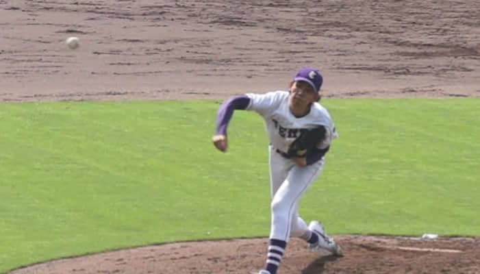 【写真】阪神大学野球春季リーグで先発した天理大・的場吏玖