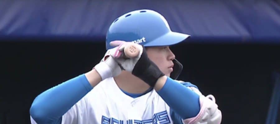 ハヤテ静岡戦で公式戦初アーチを放った日本ハム・常谷拓輝【画像:パーソル パ・リーグTV】
