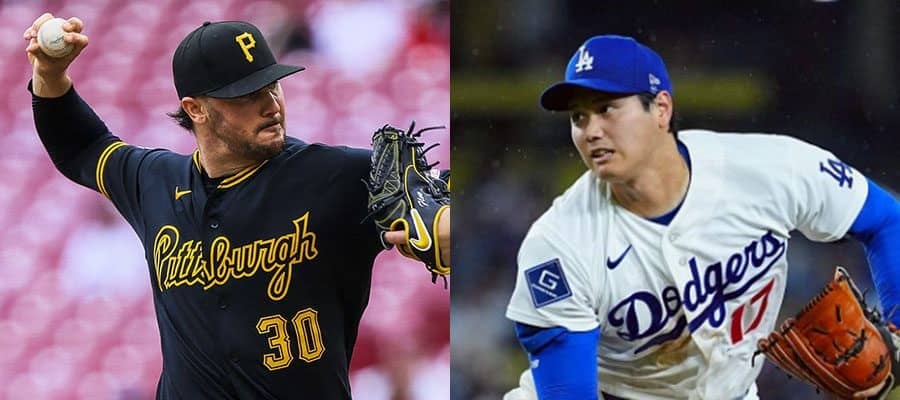 パイレーツのポール・スキーンズ(左)とドジャース・大谷翔平【写真:ロイター、荒川祐史】