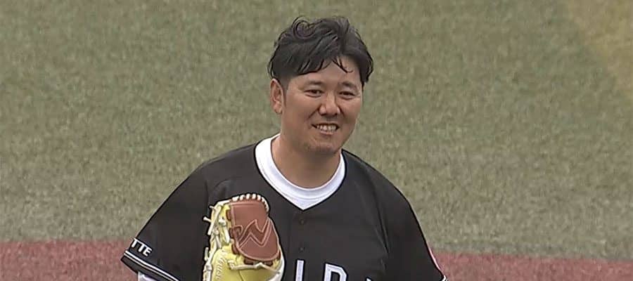 【実際の映像】「始球式の球筋じゃない」 NPB去り6年も…レジェンド左腕が内角ズバリ