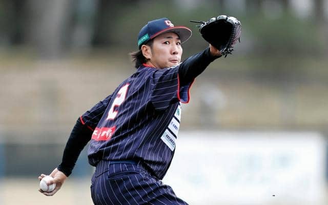 力投したスカイセイラーズの岡本直也投手=千葉県民球団提供