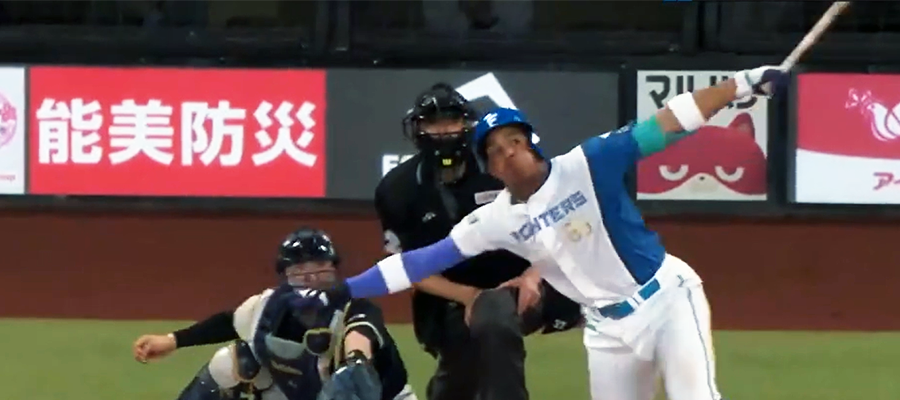 オリックス戦で勝ち越し3ランを放った日本ハム・万波中正【画像:パーソル パ・リーグTV】