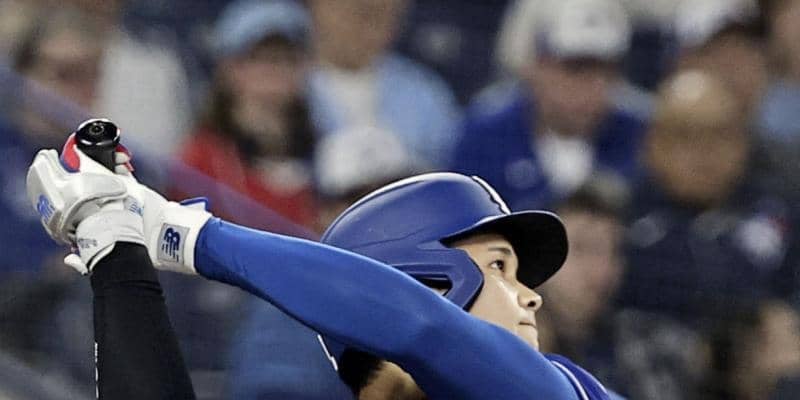 「ブルージェイズ2-14ドジャース」(6日、トロント) ドジャースの大谷翔平投手は「1番・DH」で先発出場し、六回の第…