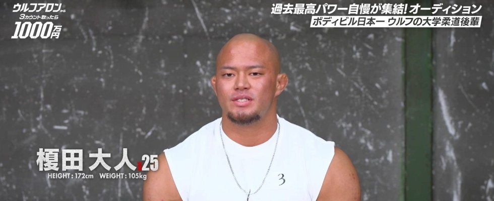 もはや筋肉の暴力…ウルフアロン危うし? 脱いだらエグすぎる“規格外”の造形美 宮崎から現れた“キン肉マン”にオーディション参加者もドン引き | ABEMA
