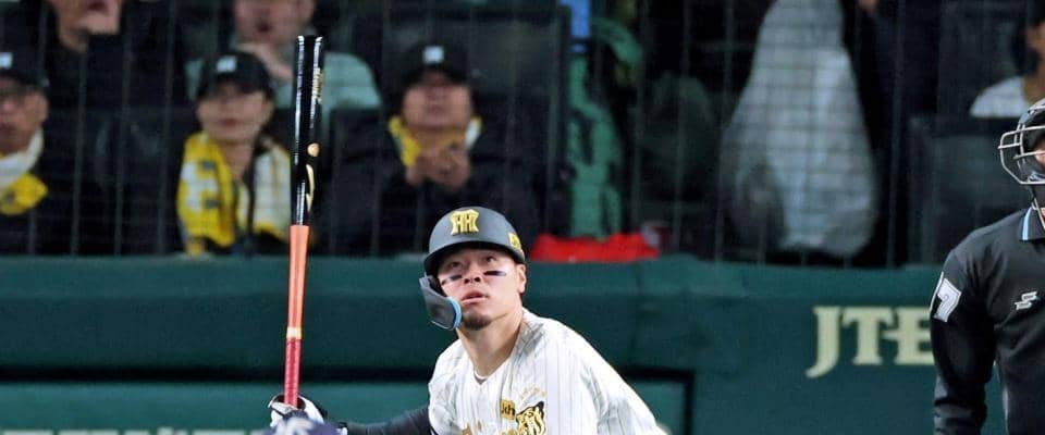 阪神・佐藤輝 森下とアベック弾で今季1号「またフェンス直撃かなと」 打率、打点、安打数、得点圏打率の4冠 | 野球