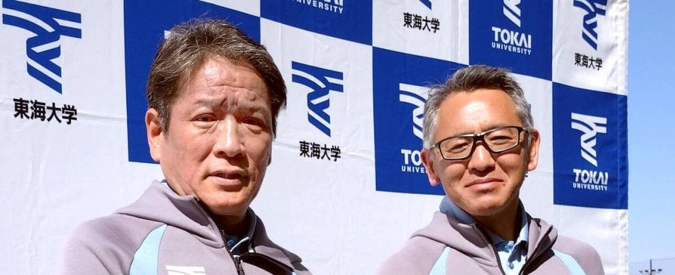 今年の箱根駅伝12位の東海大は両角総監督(左)と西出監督の新体制で復活を目指す