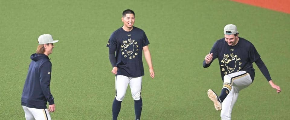 「オリックス-ロッテ」(8日、京セラドーム大阪) 新外国人のジェリーがチームメートにいじられた。 オリックスの全体練習…