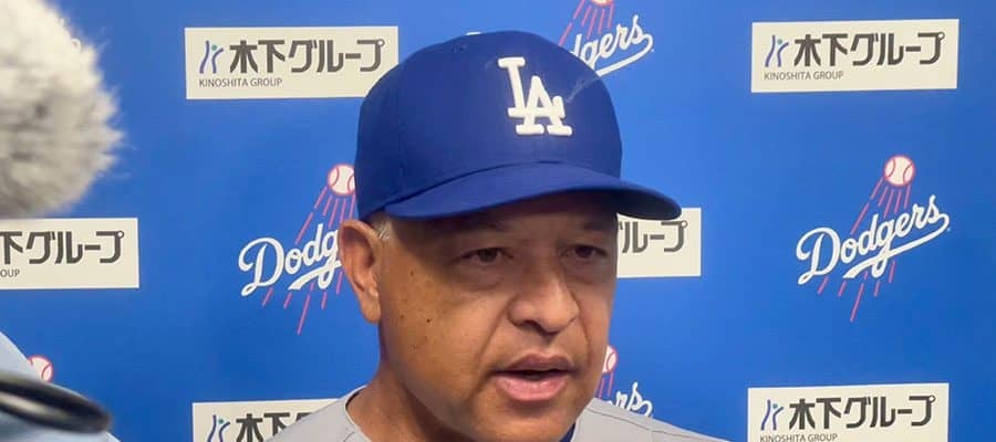 試合後の取材に応じたドジャースのデーブ・ロバーツ監督【写真:小谷真弥】