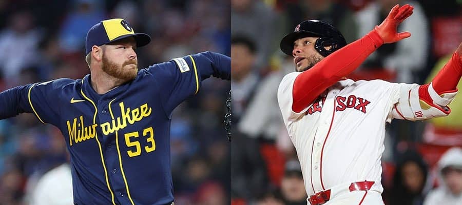 ブルワーズのブランドン・ウッドラフ(左)とレッドソックスのウィルソン・コントレラス【写真:ロイター】