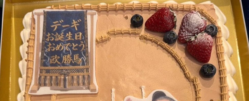 豊昇龍からプレゼントされた欧勝馬の誕生日ケーキ(欧勝馬提供)