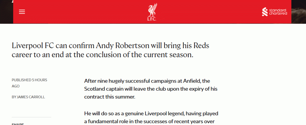 リバプールのスコットランド代表DFロバートソンが今季限りで退団 クラブが公式サイトで発表 | サッカー