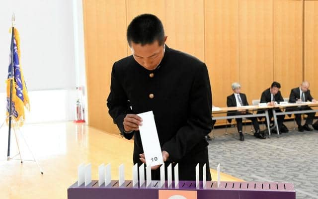 高校野球の春の福井県大会の組み合わせ抽選会=2026年4月9日、福井市、平井良和撮影
