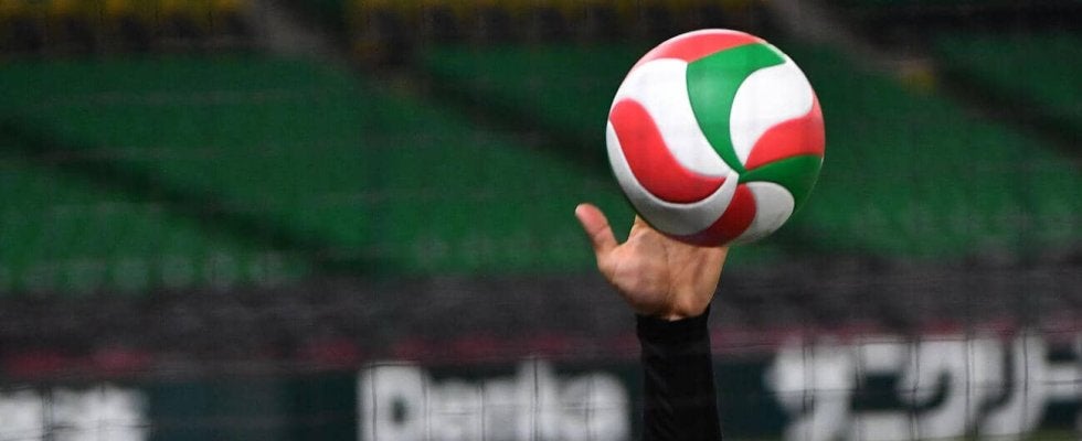 【写真】バレーボールを打つソフトバンク松本晴(撮影・岩下翔太)