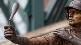 根元からバットがバキッと折れてしまったイチロー氏の銅像(C)Getty Images まさかのハプニングが“笑撃”を生ん…