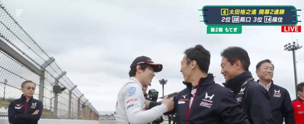 大物元F1ドライバーが「いるじゃん」 国内最速レース、ホンダの新星祝うレジェンドの姿に「変わらないな」反響 | ABEMA