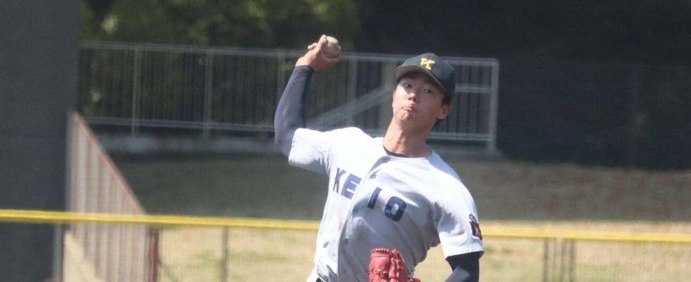 【写真】5回を3安打無失点に抑え、後ろにつなげた慶応の先発の湯本(撮影・保坂淑子)