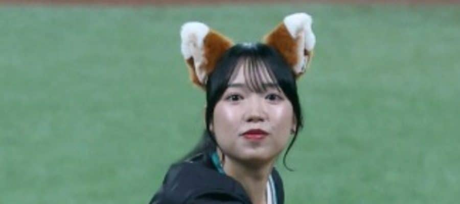 【実際の様子】「可愛すぎた」「最高」きつね美女が豪快足上げ→“ストライク投球”にファン悶絶