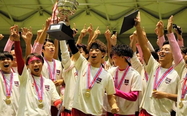昨年11月、アルティメットの全日本大学選手権オープン部門で初優勝し、喜ぶ大阪成蹊大の選手たち=2025年11月2日、福島県のJヴィレッジ、同大提供