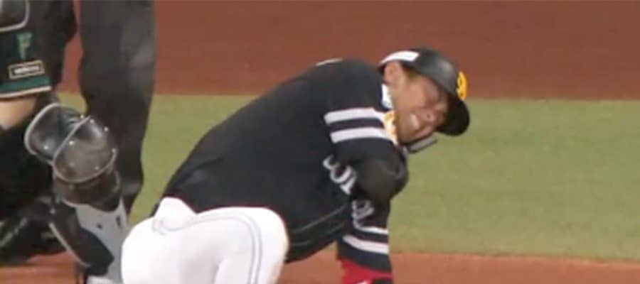【画像】「やばい音した…」ファンも騒然…鷹選手が死球を受けた場面