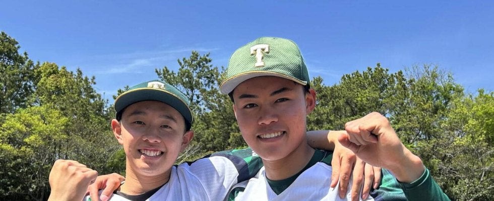 【写真】継投で勝利に貢献した常葉大静岡・高木(左)と西ケ谷は試合後、笑顔を見せる