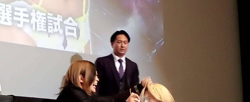 【写真】“顔拓”をとられた羽南の後方で、事態を見守る岡田太郎社長