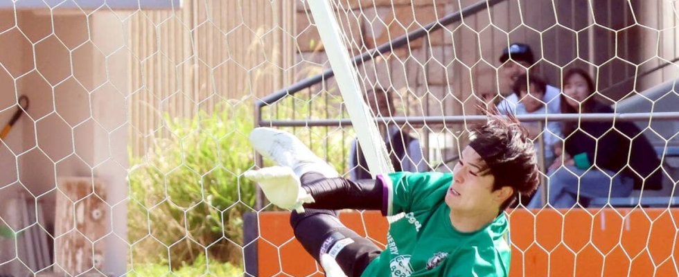 PK戦で清水の5人目を止める藤枝・田口(カメラ・里見 祐司)
