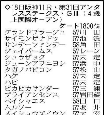 第31回アンタレスステークス・G3は4月18日、阪神競馬場のダート1800メートルで行われる。 グランドプラージュ(牡…