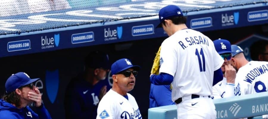 レンジャーズ戦に先発したドジャース・佐々木朗希【写真:黒澤崇】
