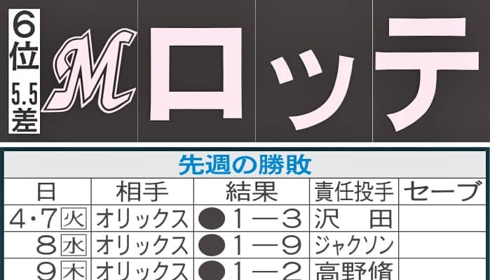 【写真】ロッテ先週の勝敗と今週の予定