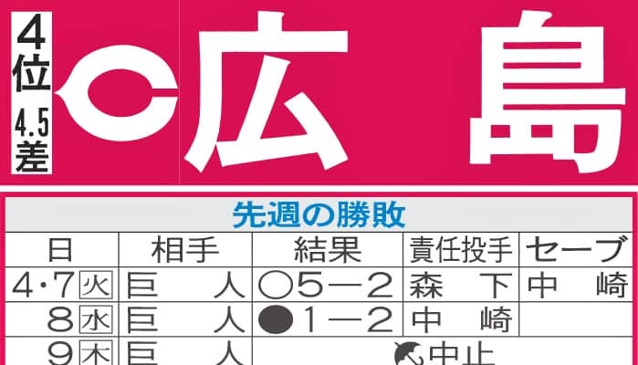 <広島:先週のMVP&今週の展望、入れ替え&広報情報>各チームの現在地を紹介します! 球団別に担当記者が選んだ先週のMV…