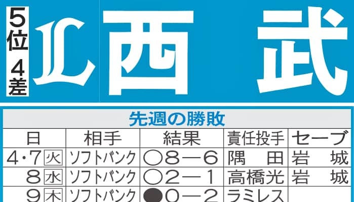 <西武:先週のMVP&今週の展望、入れ替え&広報情報>各チームの現在地を紹介します! 球団別に担当記者が選んだ先週のMV…