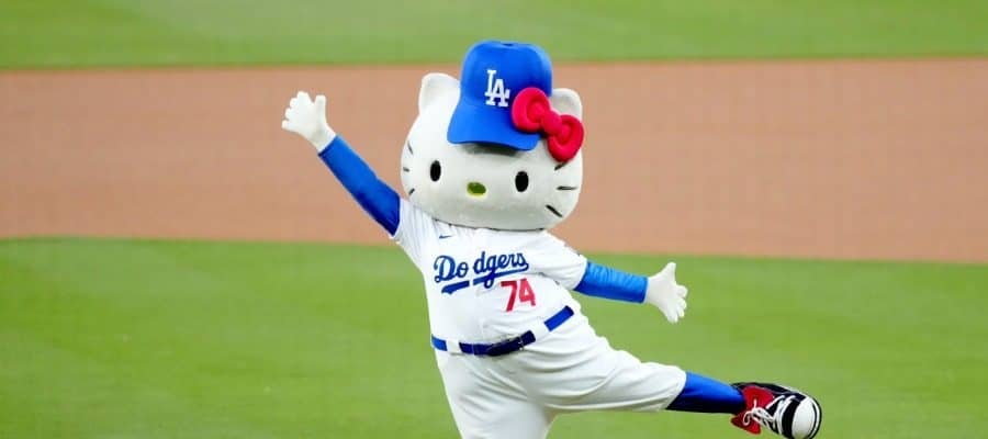 【実際の映像】始球式でコロコロ投球…特製のド軍ユニホームを着たハローキティ