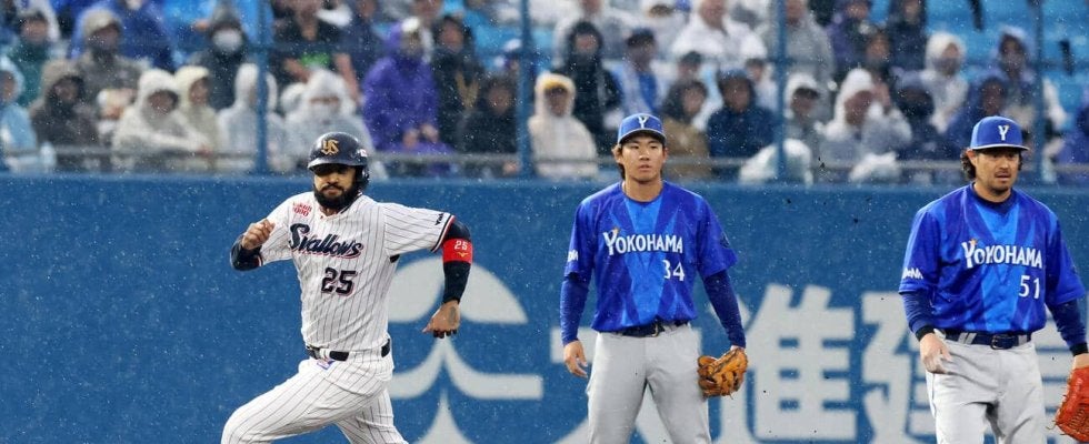 <ヤクルト-DeNA>◇14日◇松山試合開始前から雨が降る中、ヤクルトが先制した。初回1死無走者からドミンゴ・サンタナ外…