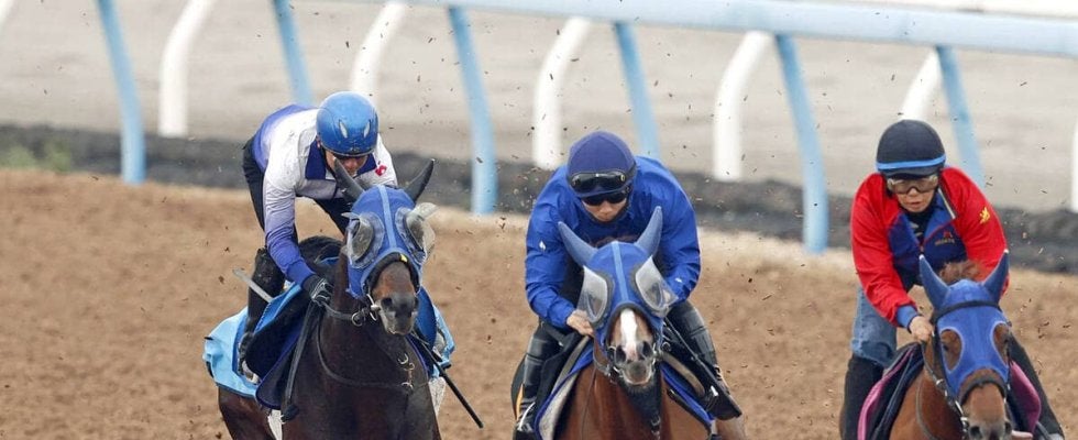 Wコースで追い切ったプラチナドリーム(左、馬上は石神深一騎手)、中央はユニゾン、右はナディア(カメラ・荒牧 徹)