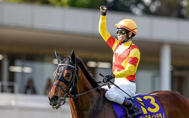 無敗で皐月賞を制したジャスティンミラノ(撮影:下野雄規)