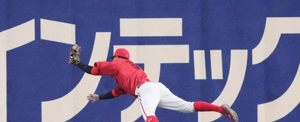 【広島】大盛穂が飛んだ!右中間への打球をダイビングキャッチし同学年栗林良吏のピンチ救う