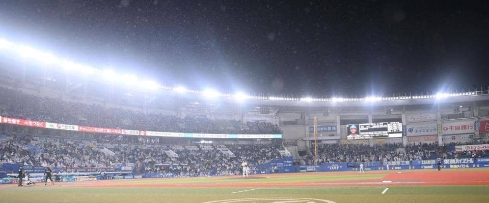 ロッテ-日本ハム 25分超のグラウンド整備後に試合再開 雨脚強まって八回表途中で一時試合中断 ロッテが1点リード
