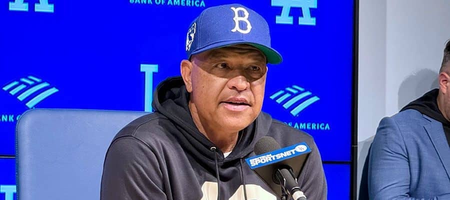 試合前の取材に応じたドジャースのデーブ・ロバーツ監督【写真:小谷真弥】