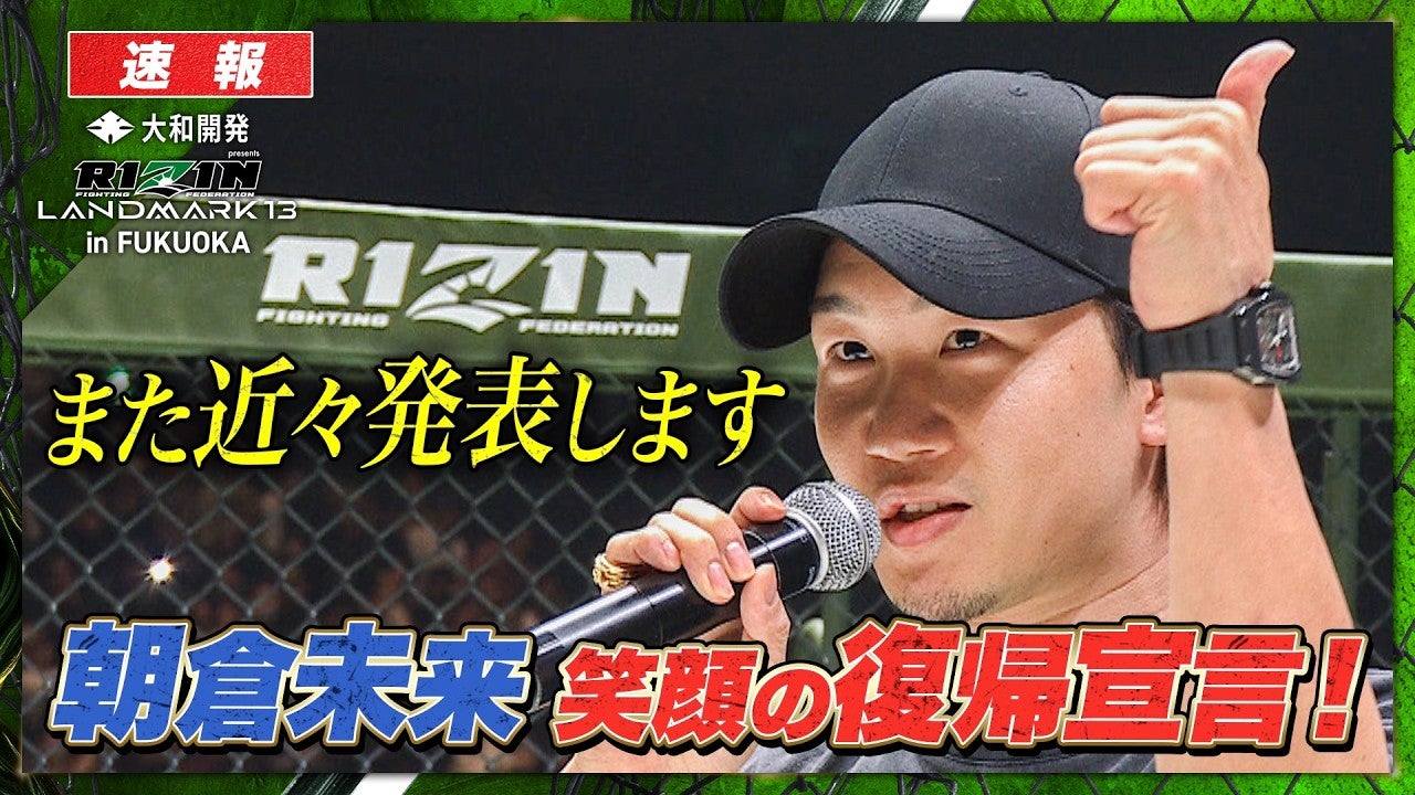 【RIZIN】次戦発表も間近か!朝倉未来、RIZIN福岡大会の会場で復帰宣言…!