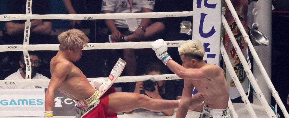 【写真】那須川天心(右)にキックを放つ武尊(22年6月撮影)