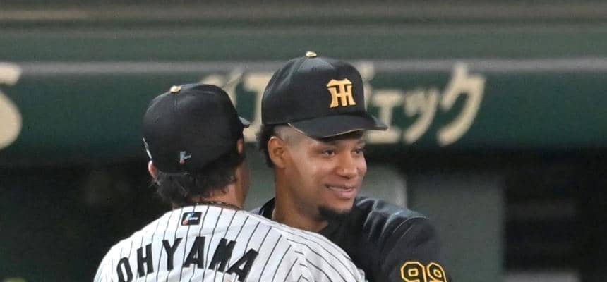 阪神 大山悠輔とモレッタが歓喜のハグ 甲子園初勝利のウイニングボールをプレゼント 岩崎&ドリスとの珍やり取りも | 野球