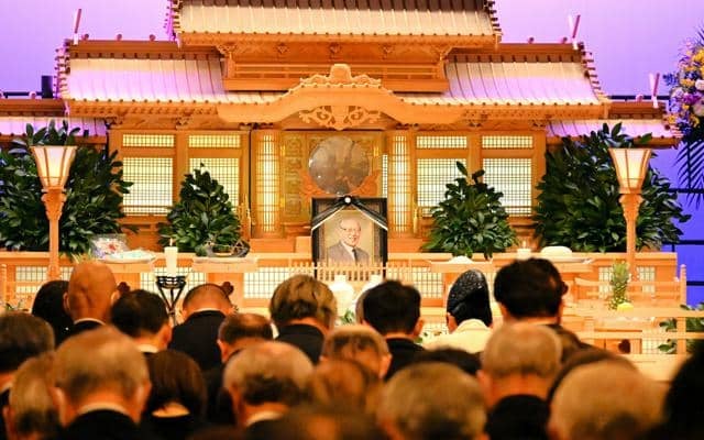 葬儀には多くのサッカー関係者が参列し、今西和男さんを悼んだ=2026年4月17日午前11時0分、広島市南区大州、木野村隆宏撮影