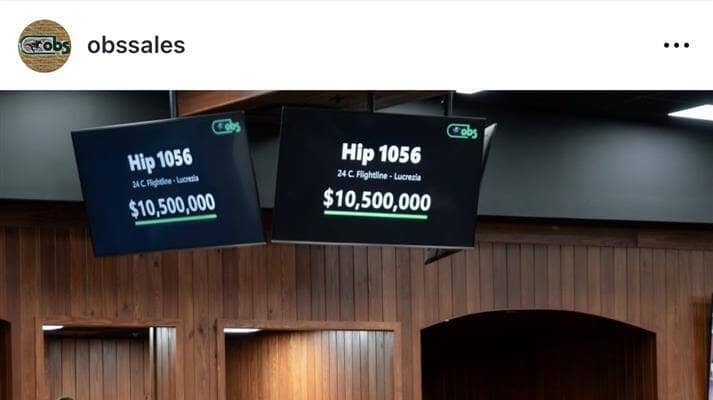 最高落札額のフライトライン産駒。OBSセールのインスタグラム(@obssales)より