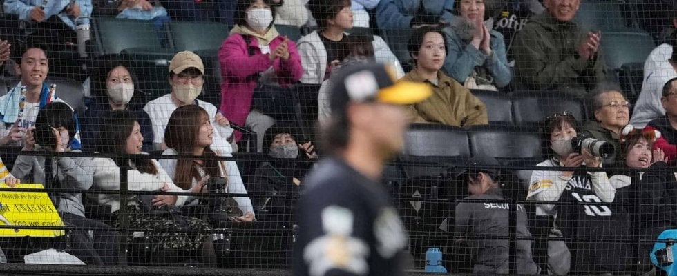 【写真】日本ハム対ソフトバンク 9回、清宮幸太郎に適時打を浴びるソフトバンク杉山(手前)を見つめる小久保監督(後方左)(2026年4月11日撮影)